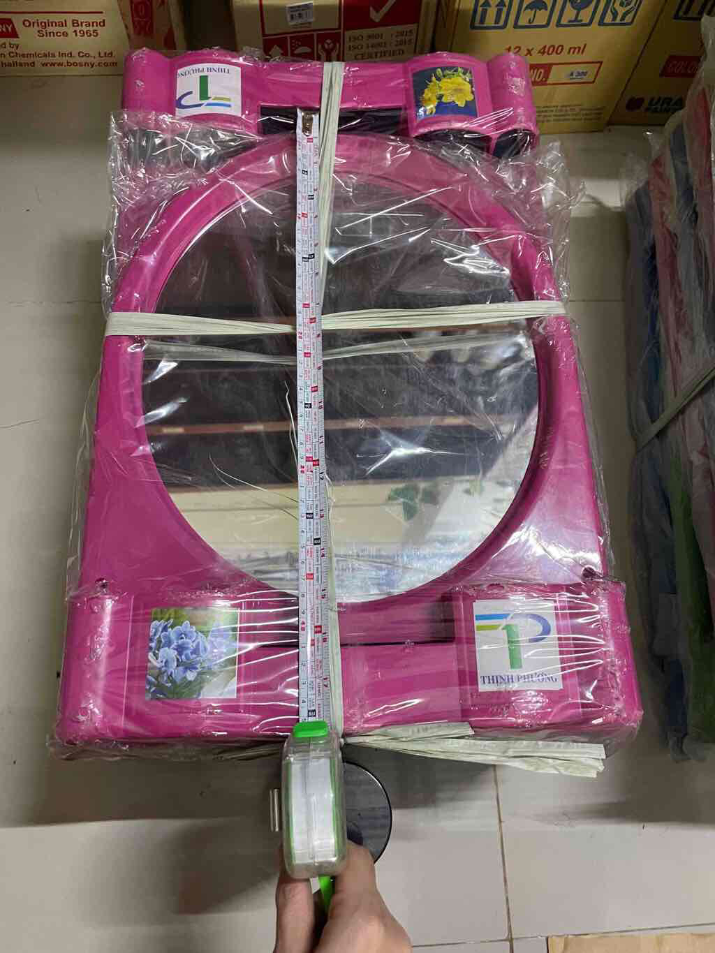Be the first to review “Gương nhà tắm khung nhựa hình elip lớn có lọ cắm bàn chải màu xanh lá, hồng NHỎ”
